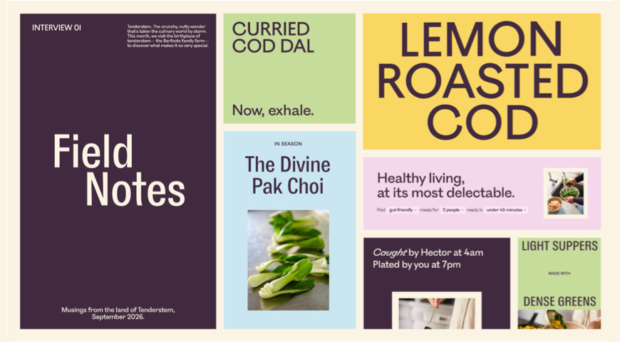 여기에 더해 재료를 풍부한 형용사로 설명하는 카피와 요리책에서 영감을 받은 레이아웃을 통해 브랜드 전반에 식재료 원산지와 레시피 완성도에 대한 신뢰를 담아냅니다.