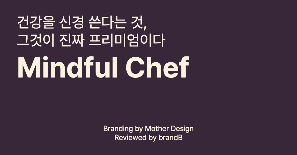 Mother Design은 Mindful Chef가 정의하는 건강을 보다 직관적으로 전달하기 위해 브랜드 표현 방식을 전면적으로 재설계했습니다. 일견 로고 변화가 없어 보이지만 디테일에서 큰 차이가 있습니다.